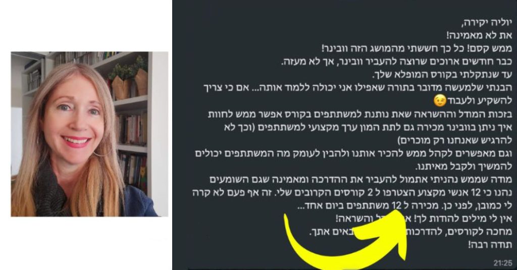 למשל לירון פיין, שמעבירה קורסים וסדנאות בכתיבה, והכניסה מוובינר אחד מעל 100,000 ש"ח!