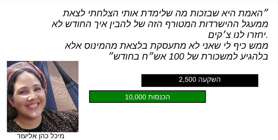 בואי תראי איך עזרתי למיכל כהן אליעזר לעבור ממצב של הישרדות, להכנסה חודשית של מעל ל-100K: