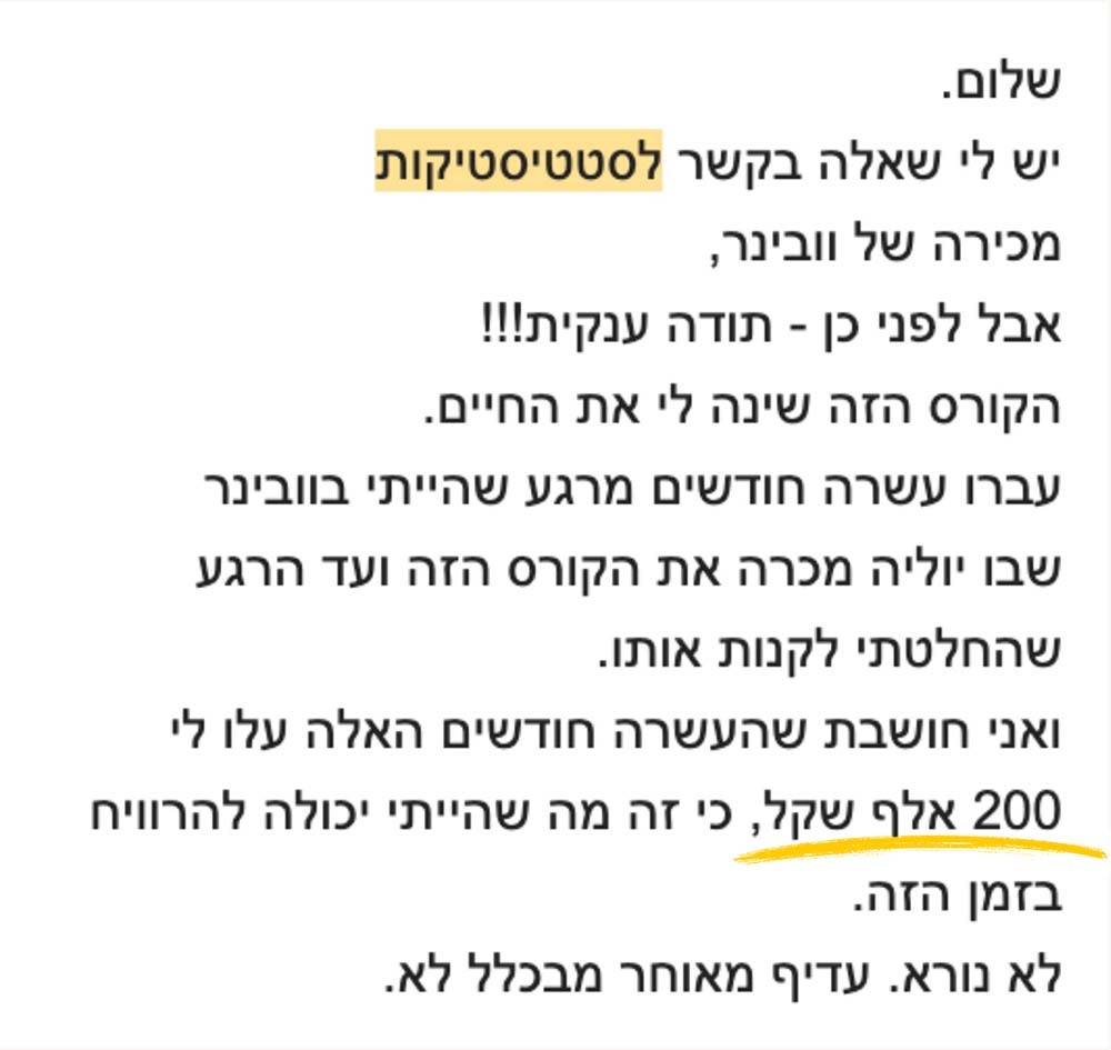 כבר בוובינר הראשון מכרתי 13 קורסים באלפי שקלים!