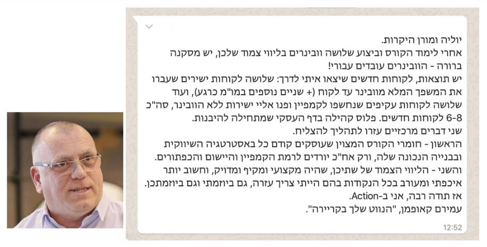 זה מה שקרה לעמירם קאופמן כשהתחיל לעבוד עם הרצאת אונליין; פנו אליו לקוחות ישירות, אפילו בלי להגיע להרצאה! ובנוסף, הדף העסקי שלו גדל בעוקבים חדשים.